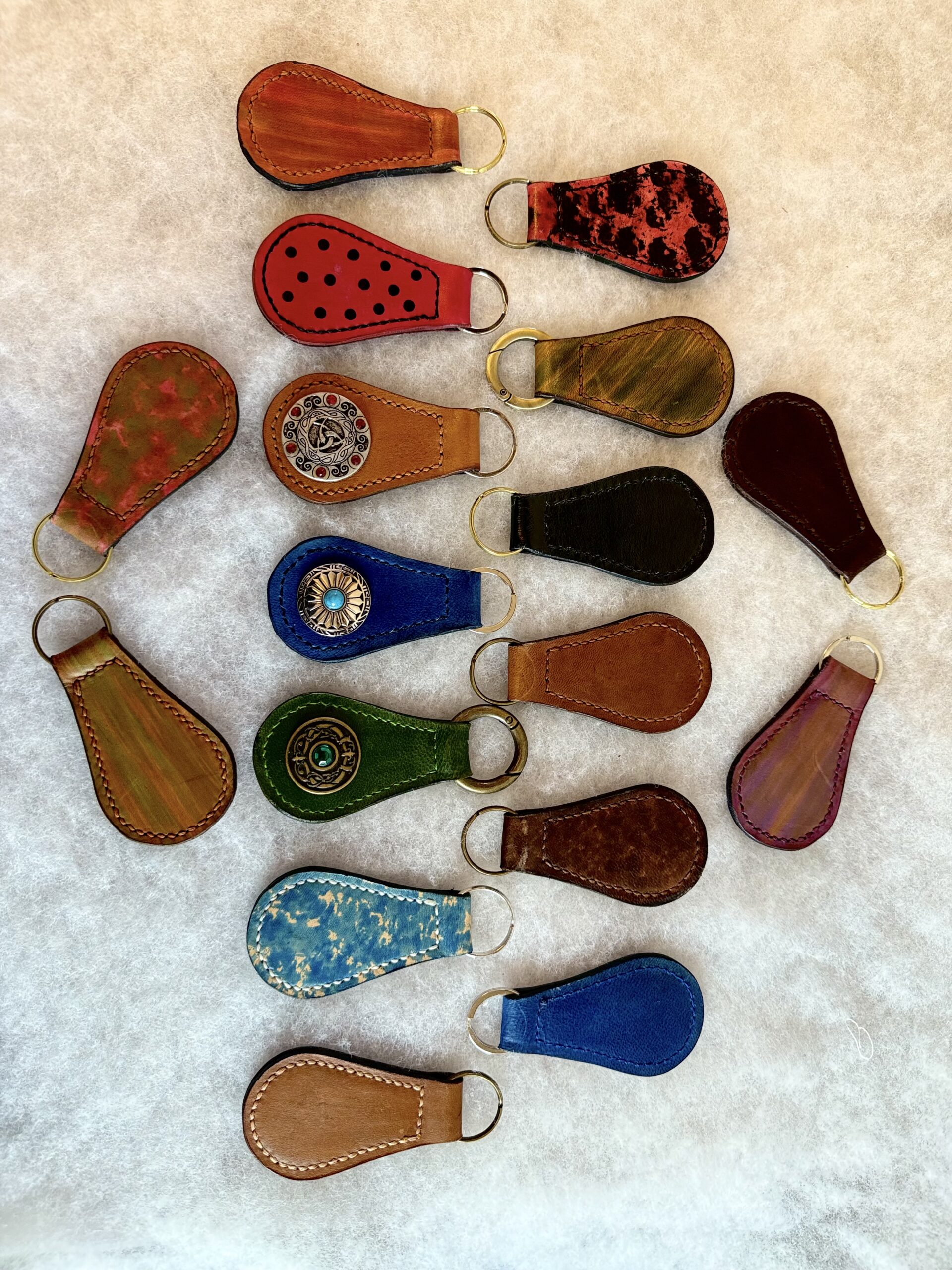 Déclinable à l’infini, ce porte-clés est proposé en de nombreuses finitions : uni, dégradé, à pois, tacheté, avec ou sans bijou décoratif.
